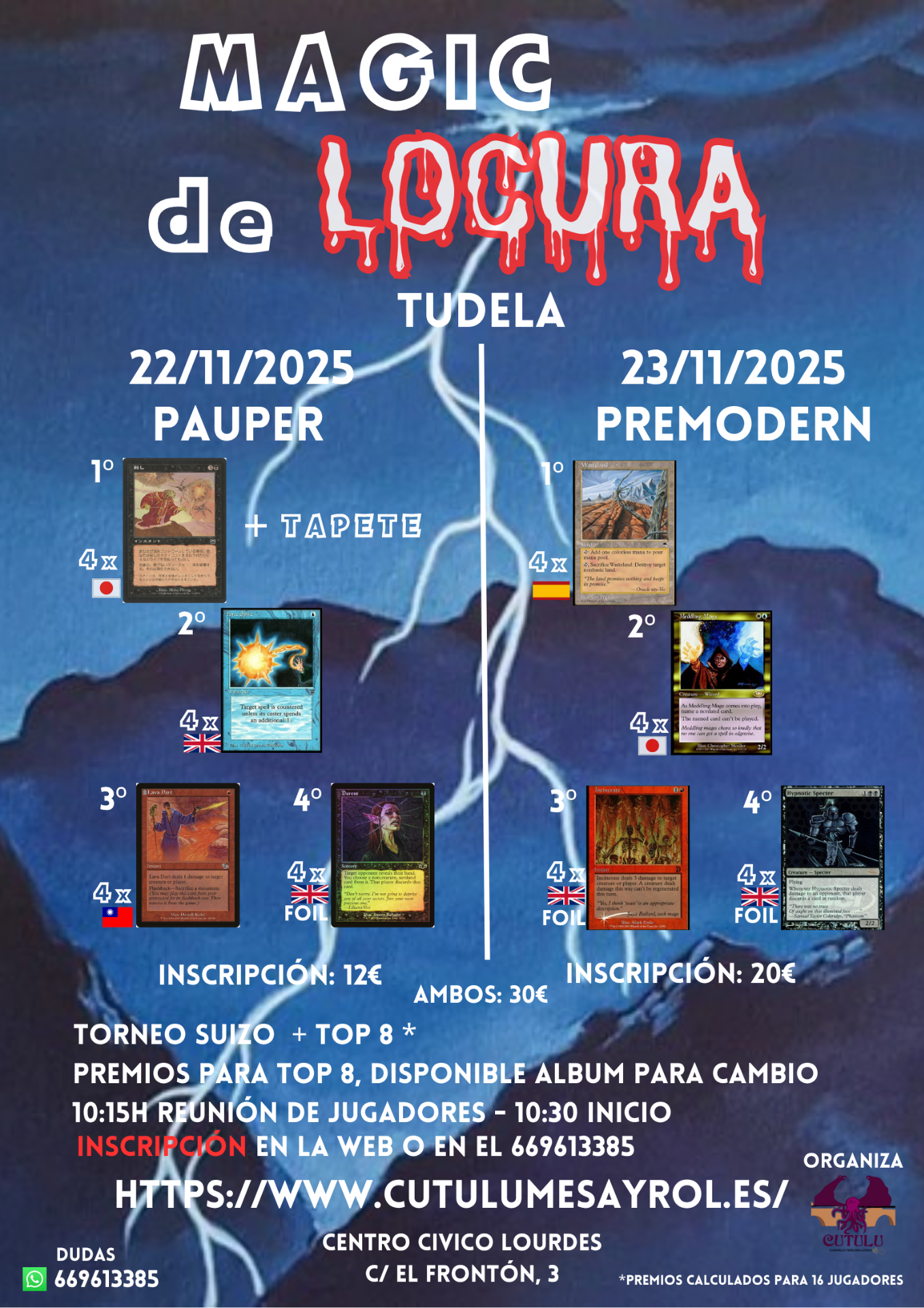Únete a un fin de semana de Locura. Segundo torneo de Pauper de Tudela y priemr torneo de Premodern. Una gran oportunidad de conocer a la comunidad de "Magic the Gathering" de la Ribera y alrededores.