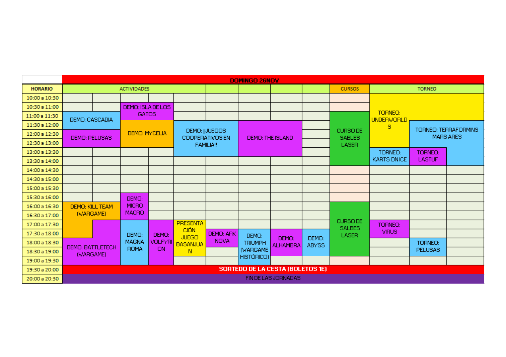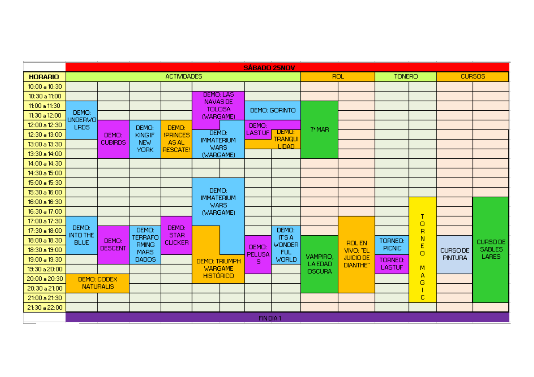 Dos días de esparcimiento, disfrute y torneos. Durante todas las jornadas se harán 2 grandes torneos, mini-torneillos y demostraciones de los últimos juegos del mercado, partidas de rol, demostraciones de wargames.